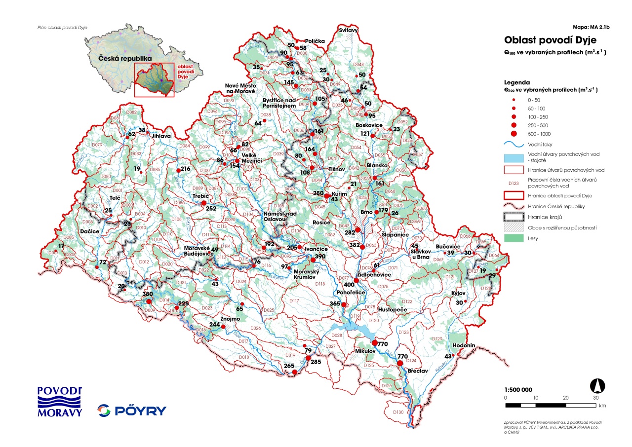 TA 2.1b Hydrologické údaje ve vybraných profilech vodních útvarů v oblasti povodí Dyje