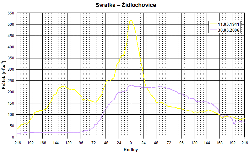 Obr. 1.6 Hydrogramy vybraných povodňových událostí ve stanici Židlochovice