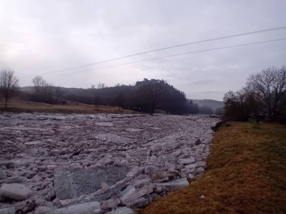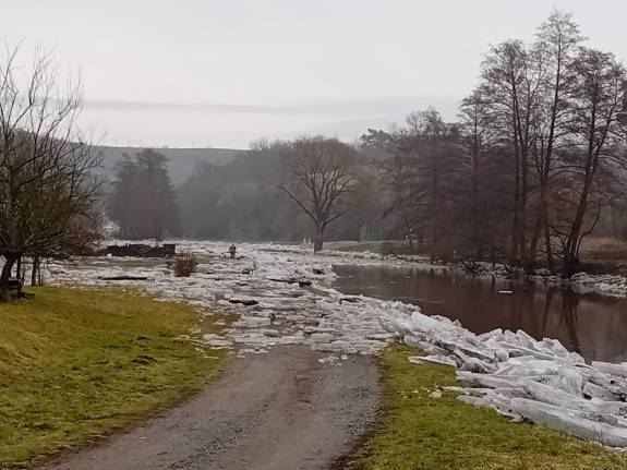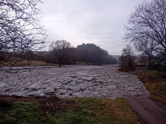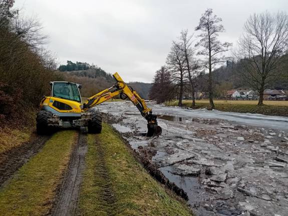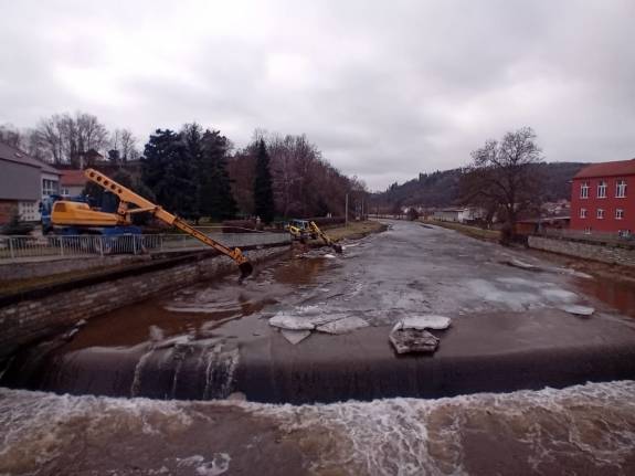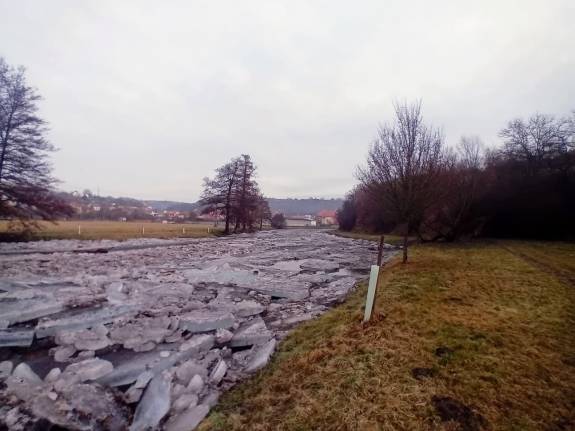 Uvolněný led začal dnes (v sobotu 7. února) hrozit u Oslavan na řece Oslavě. Do terénu jsme proto nasadili těžkou techniku, jejíž rychlý zásah rozbil ledové celiny dříve, než začaly působit problémy.