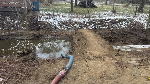 Obr.: Pokračují čerpací práce na Junáckém potoce (24. 1. 2026)