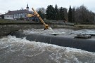 Vyklízení koryta od ledových ker v Šumicích