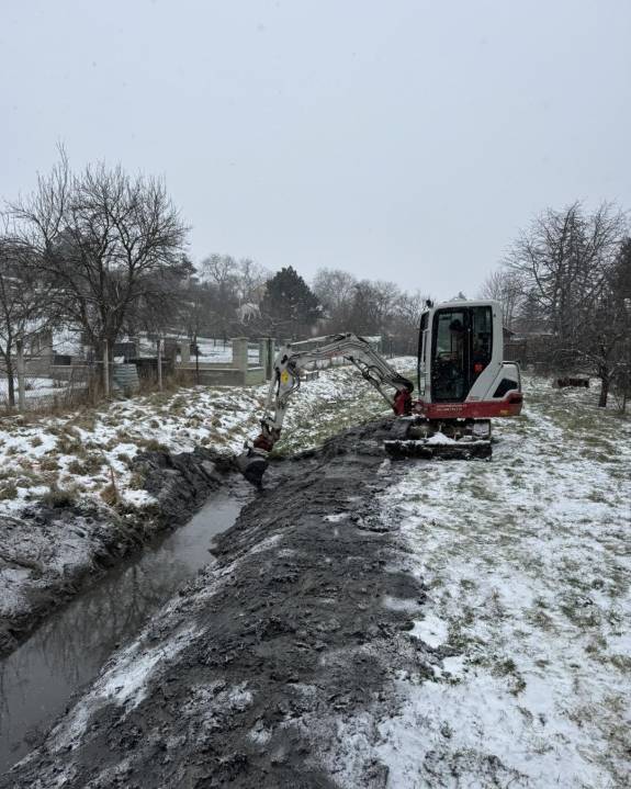 Obr.: malý bagr zvládnul vyčistit jen čtvrtinu délky úseku